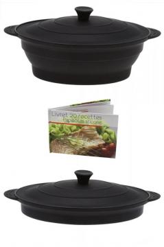 Cocottes silicone rétractable avec couvercle et grille de cuisson + livret de 20 recettes.