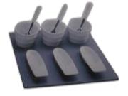 Coffret 6 amuses bouches sur plateau ardoise,3 timballes en céramique, 3 cueilléres en céramique,3 minis couverts.