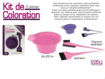 Kit coloration composé de 3 pièces. 1 bol 200 ml 1 peigne et 1 séparateur 1 applicateur de couleur.