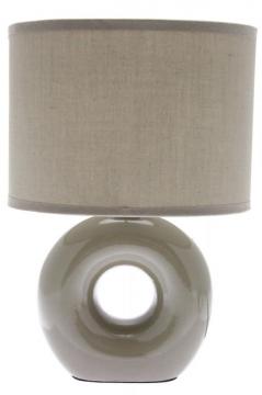 Jolie lampe avec abat jour ovale en tissu et pied en céramique rond.