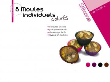 Moules individuels en silicone lot de 8, ces moules passent au four jusqu'à 240°Cet au congélateur jusqu'à -40°C et au lave-vaiselle.