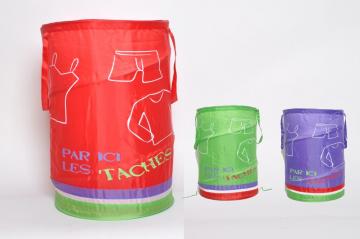 Panier à linge 100% polyester. Idéal pour acceuillir tout votre linge sale. 38 x 55 cm. Coloris rouge, vert ou violet.