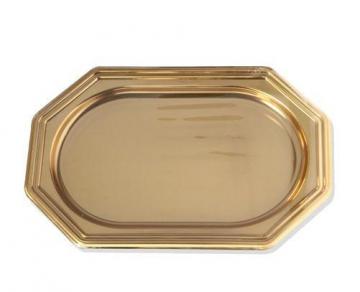 Plateau de présentation en plastique doré.