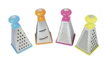 Râpe inox 4 faces . Pratique sa poignée boule pour une bonne prise en main. 4 côtés differents pour varier les plaisirs ! Coloris assortis