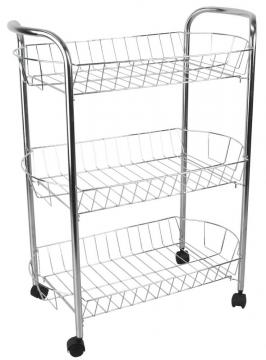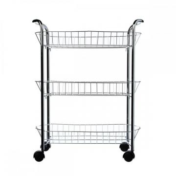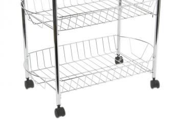 Resserre légumes 3 paniers en métal chromé avec roulettes.