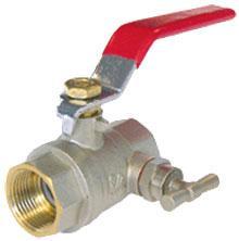 Vanne à sphère laiton série bâtiment PN 25 passage intégral finition nickelée type VS 580 avec poignée acier plate rouge.